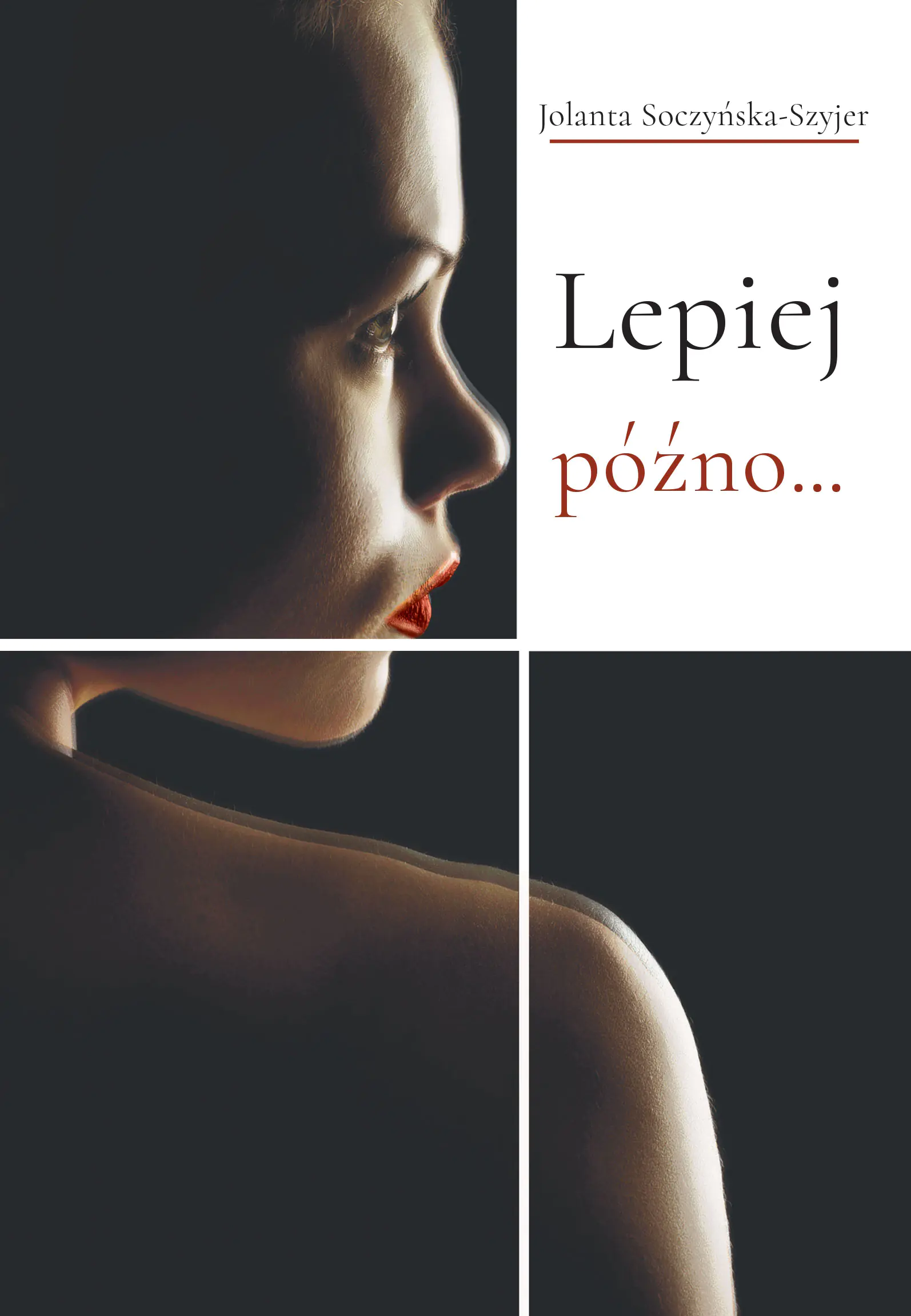Czasami rozstania pojawiają się z zaskoczenia, a nasza egzystencja potrafi odwrócić się o 180 stopni w ciągu zaledwie chwili. Powieść "Lepiej późno" przedstawia przeplatające się losy trzech kobiet, które mimo wspólnej nieszczęśliwości, każda przeżywa swoje dramaty na swój unikalny sposób. Na przestrzeni kilku istotnych tygodni życie tych bohaterek ulega istotnym zmianom, kiedy ich codzienne problemy - takie jak alkoholizm, uzależnienie od hazardu czy seksoholizm - zaczynają się kumulować, prowadząc do przełomu. Ktoś kiedyś stwierdził, że życie jest plątaniną traumatycznych momentów, pomiędzy którymi powinniśmy odnajdywać radość w nudzie i chwilach spokoju, które podarował nam los. Jednakże, czy rzeczywiście powinniśmy zrezygnować z poszukiwania szczęścia?